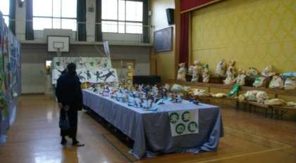子どもたちが図画工作科で制作した,版画,立体作品などを一堂に集めた図工展を市原野小学校体育館で開催しています。