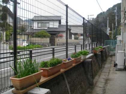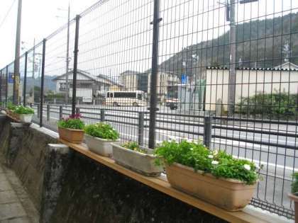 3組のお友達が,鞍馬街道沿いのフェンスの内側にプランターを設置してくれました。パンジーやキンギョソウがきれいに咲いています。