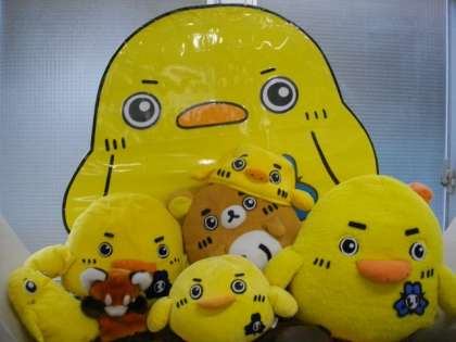 職員室前に,PTAマスコットキャラクターの「いちた」君が勢ぞろいしています。