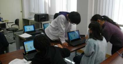 友達を教えあったり相談しあったりして,楽しく学習を進めています。