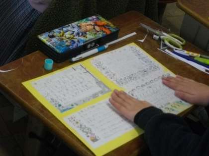 5年生は,縦割り活動でお世話になった6年生へのメッセージを書きまとめています。