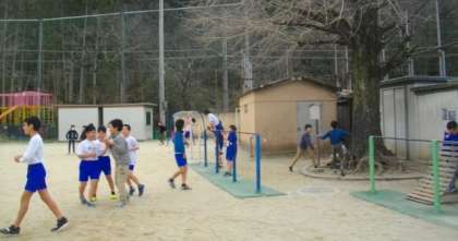 外で元気よく遊んでいます。