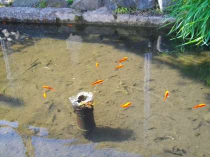 金魚たちがゆっくりと泳いでいます。