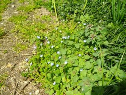 春のお知らせをしてくれるオオイヌノフグリが,陽だまりに優しい水色のお花を咲かせています。