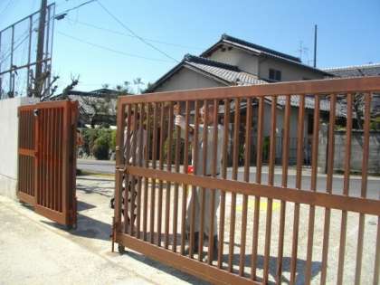 校門のペンキ塗りをします。