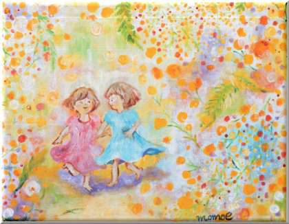 友だちと顔を見合わせては笑って,仲よく遊んでいる様子は微笑ましい光景です。これからも温かい心をもって,友だちを大切にしてほしいという願いを込めて描きました。
