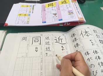 先生は,こんど みなさんに くばる かん字ドリルノートの お手本を つくっています。お手本には,正しく 書く ポイントを 書いてあるので,れんしゅうするときは 見ながら やってみてくださいね。
