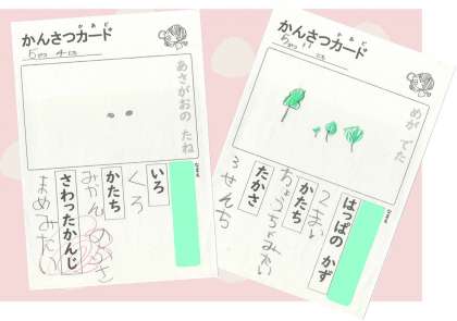 みなさんの たねは どうなりましたか。 かあどに かんさつしたことを かけていますか。