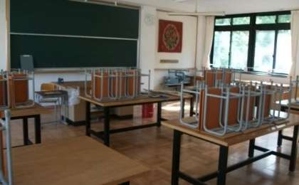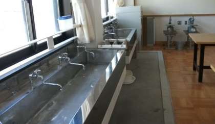 のこぎりや えのぐなどが たくさん おいてあります。ねんどばんも ありますね。