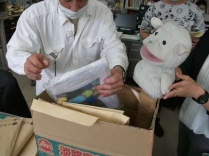職員室では,移動「いちポス」で集まったプリントと,学校に設置している「いちポス」(土日分を含む)のプリントを,担任が受け取っています。