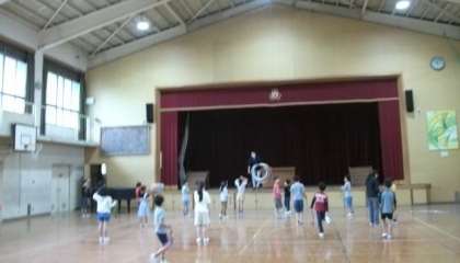 3年生は,運動場で軽くランニングをしたりフープ回しにも挑戦したりしました。