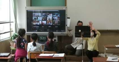 午前10時30分より,「5年 Zoom de Morning」に取り組みました。挨拶をしたあと,まずは,社会科のクイズをしました。7分くらいでしたが,みんなのにこにこ笑顔がみられて,先生もとてもうれしい気持ちになりました。また企画しますので,時間が合えば参加してくださいね。(前にすわっているのは,特例預りで学校にきていた5年生の子どもたちです。)