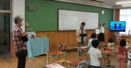 自治連の会長様が,子どもたちの様子を見に来校していただきました。ちょうど,「ZOOMでラジオたいそう」の取組の最中でしたので,参観をしていただきました。