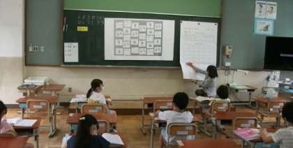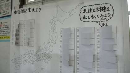 2年生は,表とグラフの学習をしています。4年生の部屋には,都道府県クイズが掲示してありました。