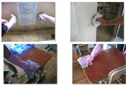 子どもたちが帰ったあと,各教室で消毒作業をすすめました。