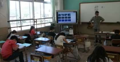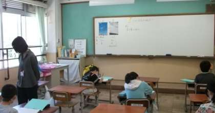 5年生は,さっそく理科の天気図を見ながら,課題プリントに取り組んでいます。