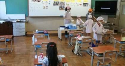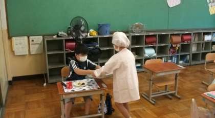 1年生にとっては,初めての給食の日になりました。配るお当番も上手にできていましたね。