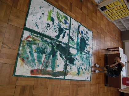 ずこうのじゅぎょうで ぬたくりあそびを しました。