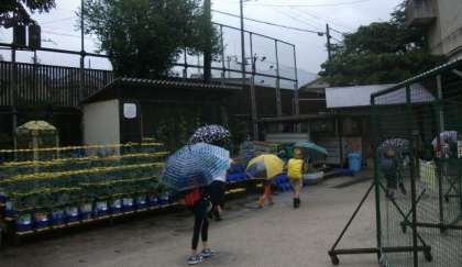 朝からしとしとと雨が降っています。色とりどりの傘をさして,子どもたちが登校してきました。