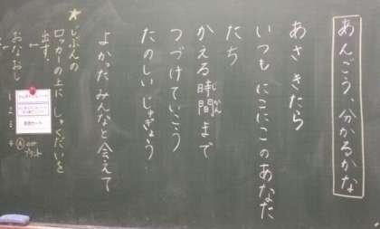 朝,子どもたちが学校にくると,担任の先生からのメッセージが黒板に書かれていました。