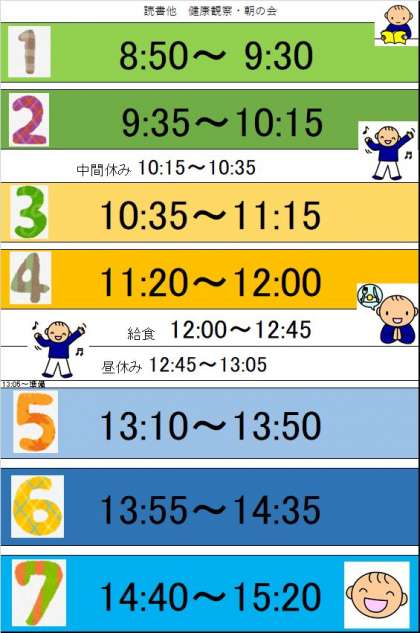 詳しくは,各学年だよりに時程等を掲載しますので,ご覧ください。