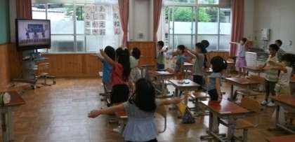 1年生は,音楽に合わせてダンスに挑戦していました。