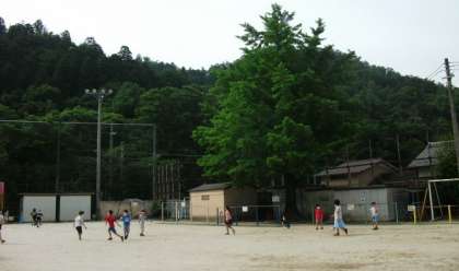 朝休みの時間です。運動場で元気に遊んでいる子どもたちの様子です。