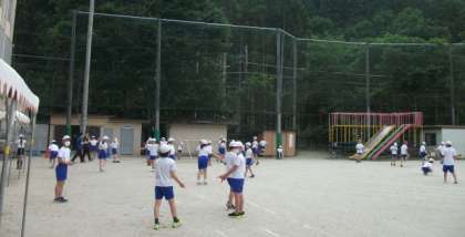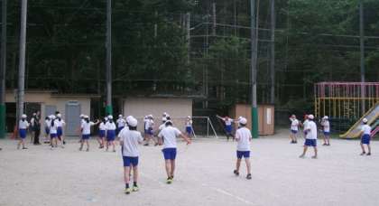 5年生の体育学習の様子です。なわとびをしたあと,集合です。