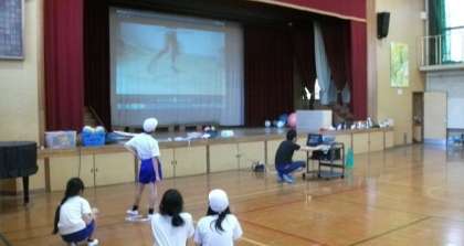 6年生は,体育の時間にゴムとびにチャレンジしていました。