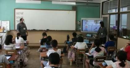 5年生は,外国語に取り組んでいます。今日は,歌をうたおうということで,英語の歌にチャレンジしています。隣のクラスでは,どの範囲でどんな問題がでるのかを連絡して,明日の算数ミニテストに備えています。