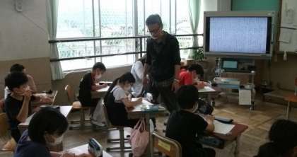 5年生が,国語に取り組んでいます。文を読んで要旨をまとめています。昨年に比べて,文字の量が増えていますが,集中して課題に取り組んでいます。