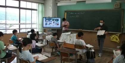 6年生は,外国語科で,いろいろな国の旗について調べていました。