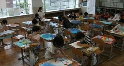 2年生は,図画工作科で「じぶんだけのひみつのたまご」を描いています。