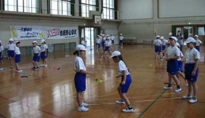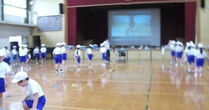 3年生は,準備運動のあと,少しの時間ですが,ゴム跳びに挑戦していました。