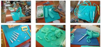 1年生は,粘土で作品作りに取り組んでいました。