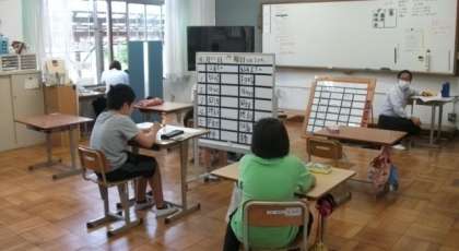 3組は,朝の会で一日の学習予定を確認しています。