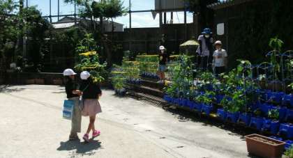 トマトの観察が終わったら,ウサギ小屋の前まで運んでいます。