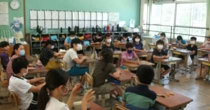 図画工作の時間です。今日は,文房具をデッサンする課題に取り組みます。