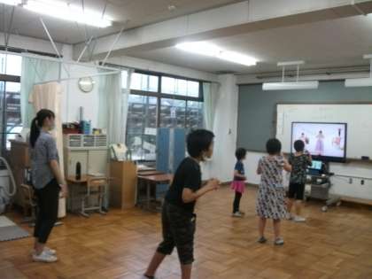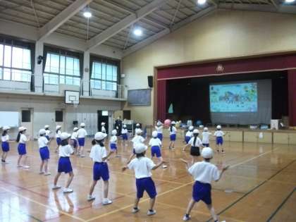 2年生は体育館でダンスをしています。3組も取り組んでいます。
