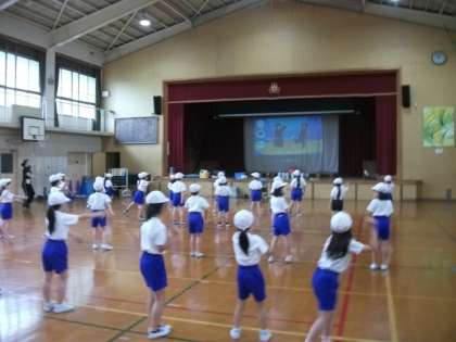 2年生が体育館でダンスをしています。
