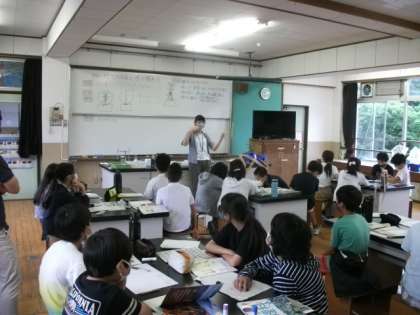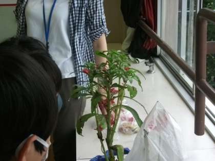ホウセンカに着色した水を吸わせ,茎や 葉に水の通り道があることを調べました。今日は「蒸散」という言葉の意味について学習をしていました。