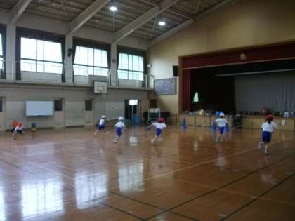 1年生は,体育館で体育をしています。