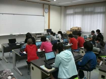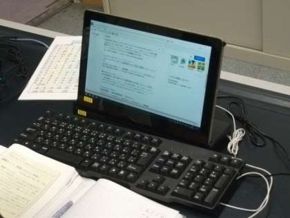 6年生がコンピュータ室で調べ学習をしています。検索のときに,言葉を,「キーボードから入力」している児童と,「ペンで入力」している児童がいました。どちらも便利な入力方法です。