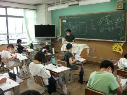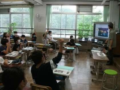 今日はプレゼンソフトで作成したオリジナルクイズ問題で,「がく」「おしべ」「めしべ」などの名称について復習をしていました。