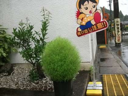 校門前に,大きなコキアを置いています。なんともかわいらしい形です。