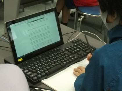 6年生は,国語科の発展学習で,調べ学習をしていました。文字情報や音声情報を抜き出して,必要な内容だけを選んでノートに書きまとめる作業を大切にしています。