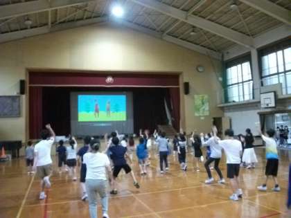 今日から,中間休みと昼休みに体育館で「ダンスタイム」を行います。希望するお友達が集まって,体を動かしています。今日は,1・3・6年のお友達が参加していました。6年生が,元気いっぱいの「キレッキレ」のダンスを披露していたので,1,3年生も驚いていました。