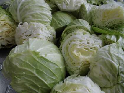 朝,みずみずしいキャベツがたくさん届きました。今日のごま酢煮に使うキャベツです。ごま酢煮にはキャベツのほか,きゅうり・にんじん・細切り昆布が入っています。いろいろな具の食感を楽しんで食べることができるメニューです。