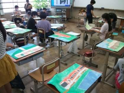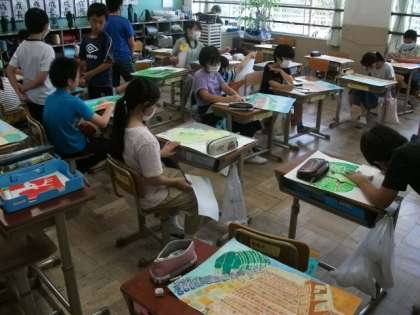 5年生は,絵画の鑑賞をしています。お友達の作品のいいところを見つけています。