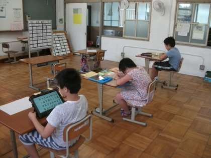 3組では,タブレットを使ったり,プリンtに取り組んだり,本を読み進めたりと,それぞれのめあてにそって学習をしています。
